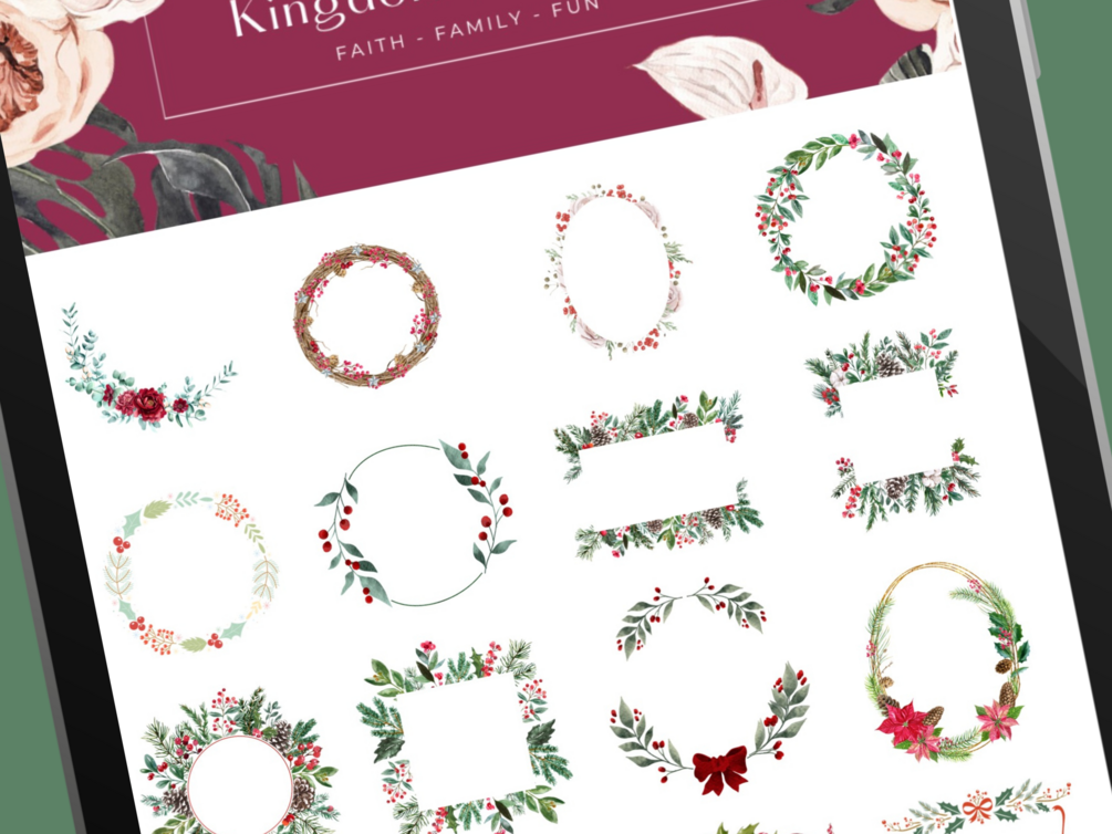 This digital sticker pack includes beautiful scriptural quotes on different Christmas floral backgrounds.